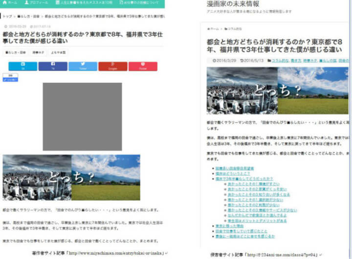記事レイアウトの比較では単純にこちらのブログとパクリブログの比較を行います。