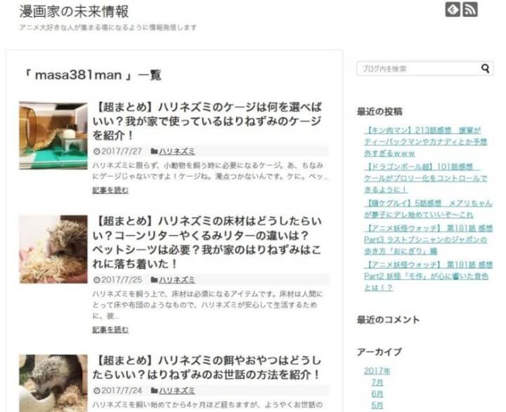 その下層ページでは「漫画家の未来情報」というタイトルで運営されていました。